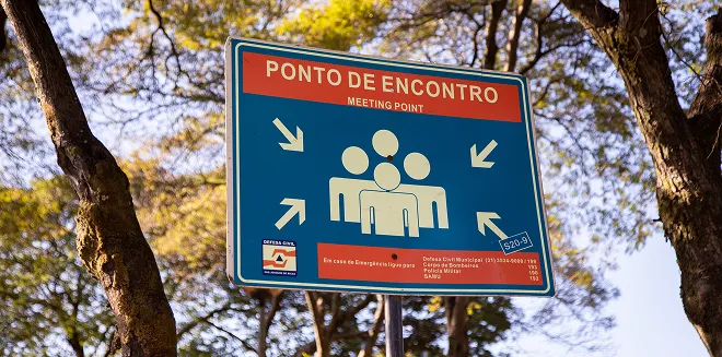 Signage is essential to guide the community and authorities in emergency situations. Mineração Morro do Ipê installs and updates these signs in Brumadinho, Igarapé, and São Joaquim de Bicas in partnership with local Civil Defense teams, ensuring that risk areas, evacuation routes, and meeting points are always clearly marked and up to date.